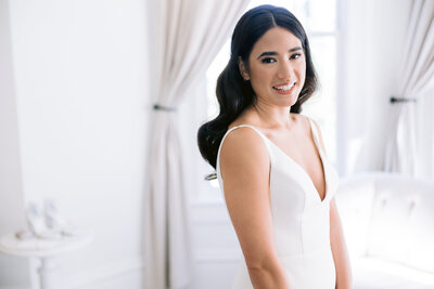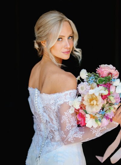 My brides tend to prefer a lighter touch. They love skincare, good lighting, beautiful details, and that quiet-luxury feeling of looking polished without looking “done.” My favorite part of this work is creating a calm, grounding space on your wedding morning where you can breathe, settle in, and feel completely taken care of. I’m obsessed with the little things- the way your skin catches the light, the softness of a blended liner, the balance between glow and longevity. And yes… I will absolutely take the extra minute to perfect your lip, your part, your veil placement- all the tiny touches that make you feel confident from every angle and in every photo.